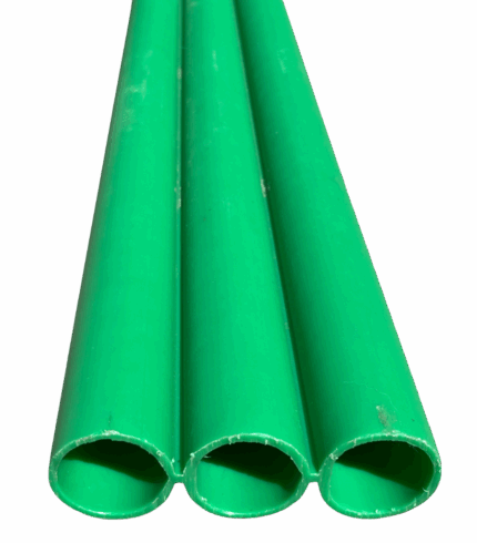 Tritubo para fibra óptica de 2” (50 mm), con 5.7 mm de espesor de pared, fabricado con polietileno de alta densidad, ideal para la instalación de fibra óptica o cables eléctricos en el acotamiento de carreteras.