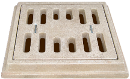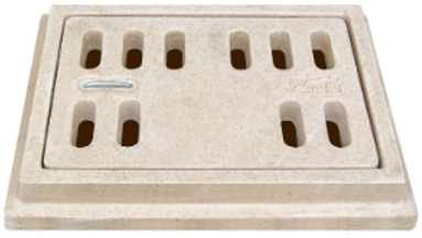 - Fabricado en concreto polimérico de alta resistencia reforzado con fibra de vidrio, con jaladera de acero inoxidable galvanizado.