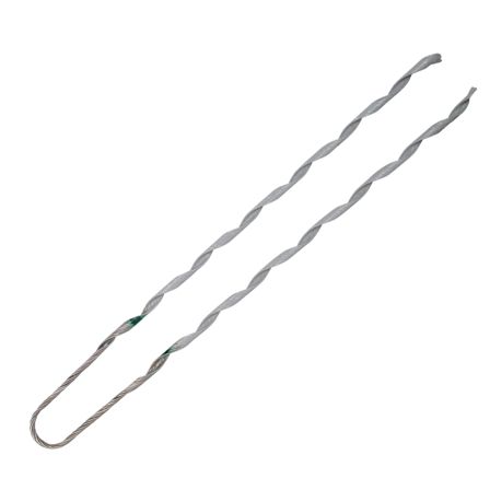 - El remate preformado para mensajero está fabricado con alambre de acero de medio carbono, recubierto con una capa de galvanizado por inmersión en caliente de al menos 0.68 oz por pie cuadrado, lo que asegura una excelente resistencia a la corrosión y una larga vida útil.