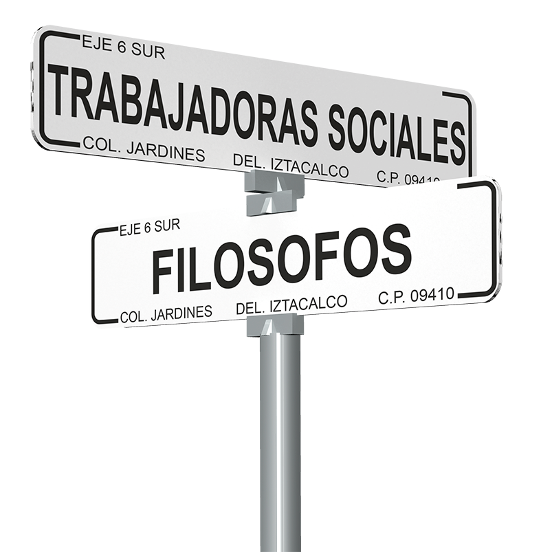 - Fabricadas en lámina galvanizada calibre 16 con película adherible reflejante grado ingeniería o alta intensidad en color blanco.