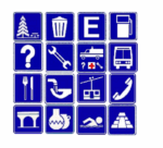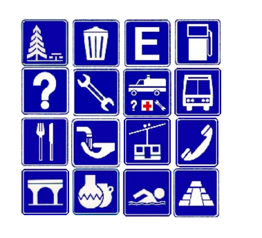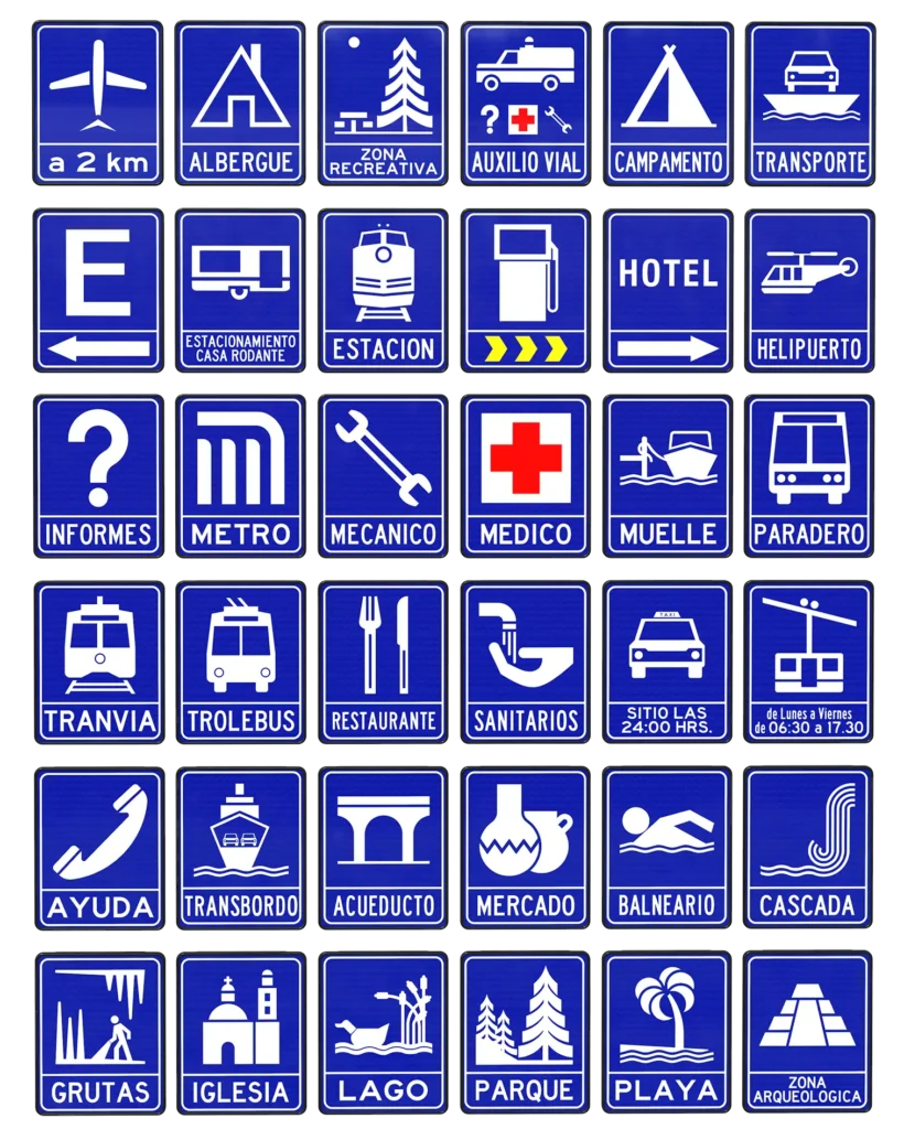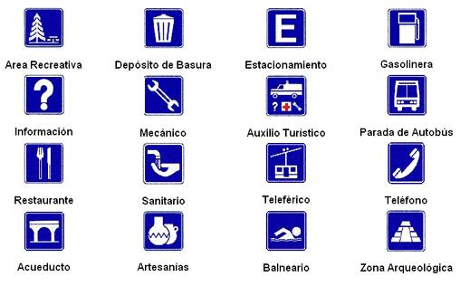 - Señal que guía a los usuarios a lo largo de su trayectoria por calles y carreteras informándole sobre la proximidad de servicios (teléfonos, hoteles, gasolineras, hospitales, etc.).
