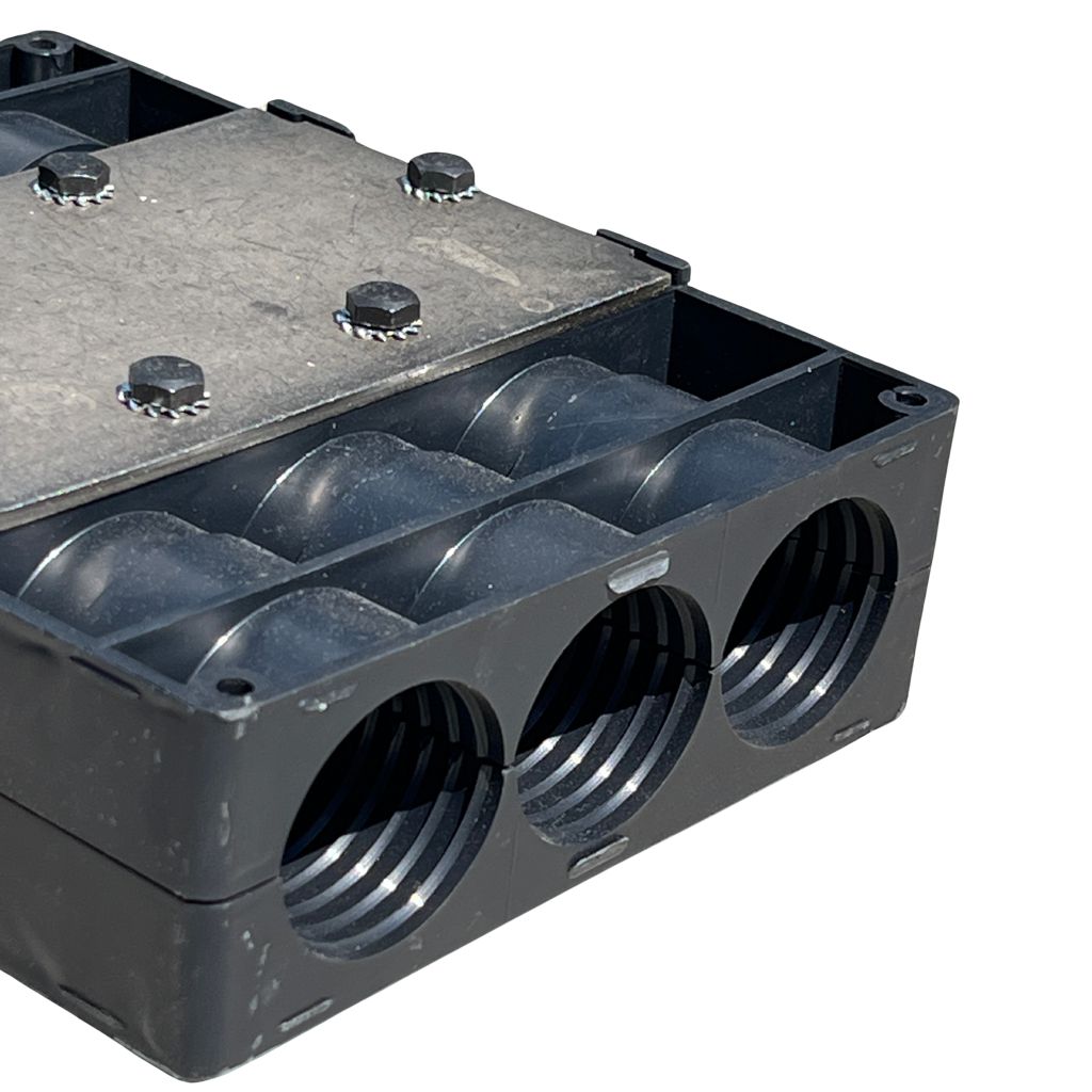 El soporte unión o caja de acoplamiento también puede ser utilizado como cople de reparación para reparar cualquier daño ocasionado al tritubo al momento de la instalación.