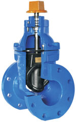 Válvula de Vástago Saliente de Hierro Fundido: Fabricada con cuerpo, bonete, compuerta, volante y prensaestopa de hierro fundido; vástago de acero inoxidable; asientos del cuerpo y compuerta de bronce o acero inoxidable; y tuerca deslizante de materiales resistentes.